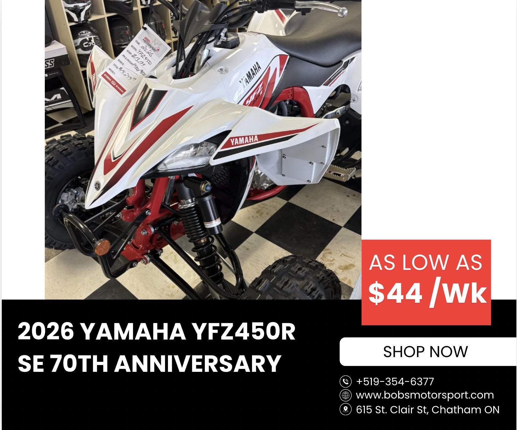 This 2026 YFZ450R SE 70th Anniversary Edition is in stock now at Bob’s Motorsport and ready for riders who want true race-bred performance.